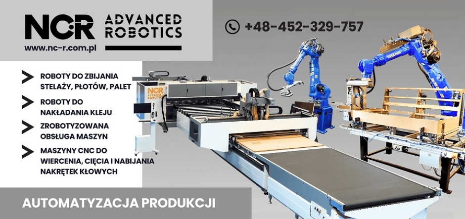 NC-R ADVANCED ROBOTICS offre soluzioni moderne per l’automazione e la robotizzazione della produzione, con particolare attenzione al settore del mobile e alla produzione di pallet. L’azienda progetta, costruisce e implementa linee di produzione complete basate su robot a 5 e 6 assi e su macchinari CNC. Realizza postazioni robotizzate per il montaggio (ad esempio: telai, pallet, cornici, recinzioni), per la gestione di macchine CNC e per il carico/scarico automatico.